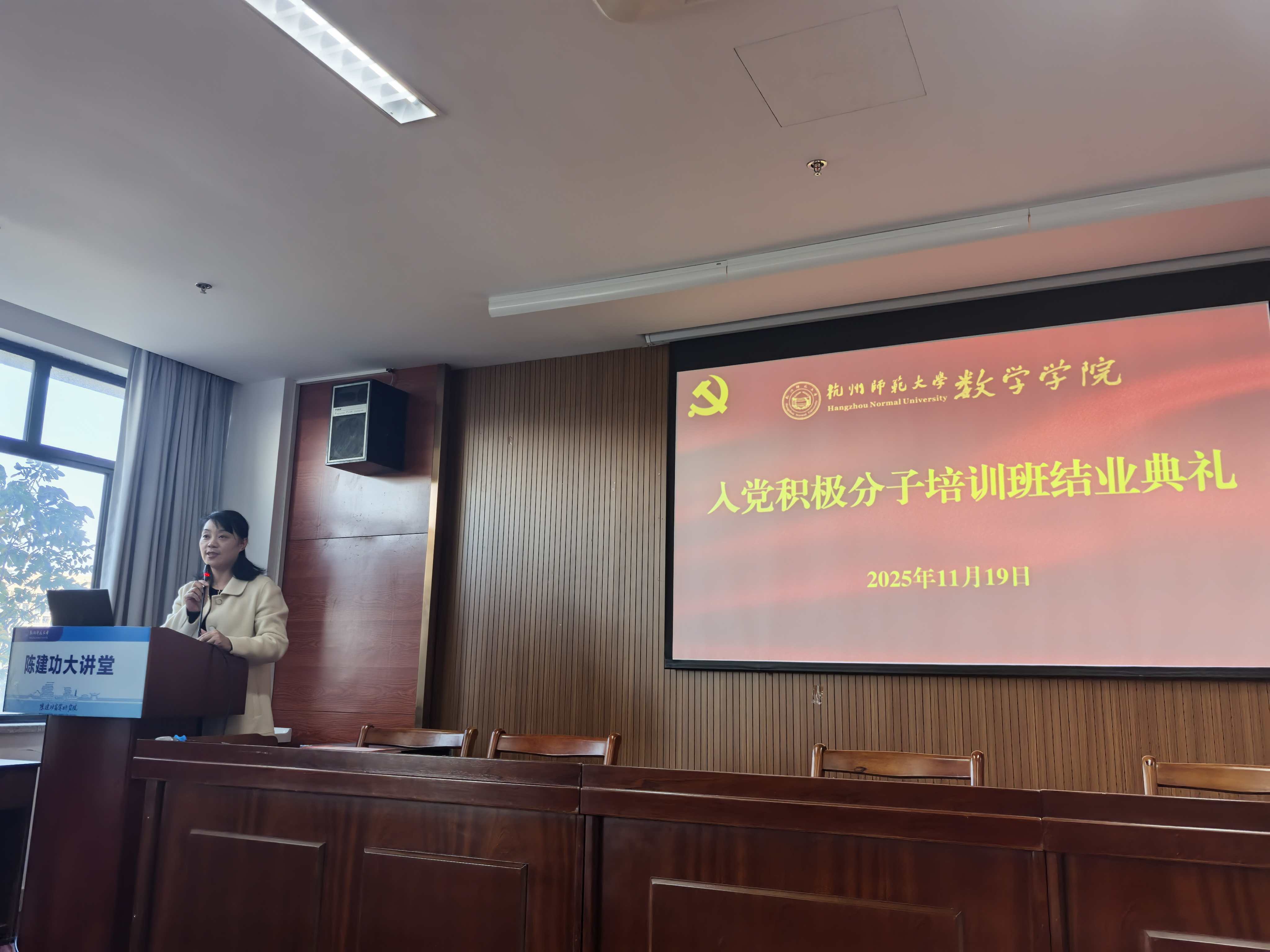 在专题党课之后,学院随即举行了第九期入党积极分子培训班结业典礼。沈燕维老师全面总结了为期二十余天的培训工作,并公布了本期优秀学员。数学231毛浩哲、数学232华瑜欣、统计231杨思妤、统计231刘 可、数学242金炜明、数学245谢思嘉6位同学被评为优秀学员接受了表彰。沈老师强调,结业不是终点,而是接受党组织更严格考验的全新起点。她寄语全体学员,要从“深化思想认识、端正入党动机、秉持学思践悟”三个维度持续锤炼自我,以笃行不怠的实际行动积极向党组织靠拢,在追光逐梦的征程中践行新时代青年的责任与担当。