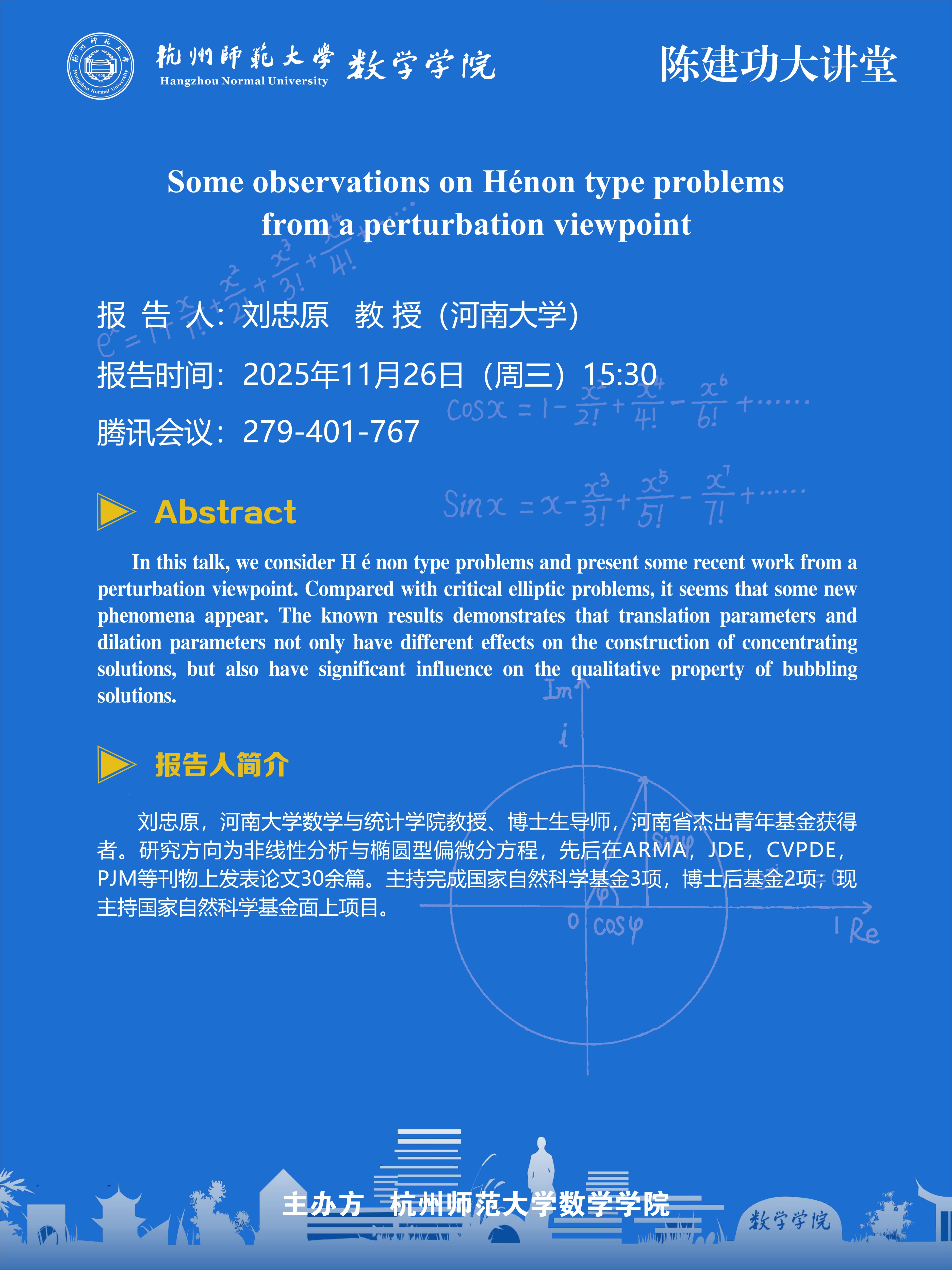 陈建功大讲堂(2025-142):Some observations on Hénon type problems from a perturbation viewpoint