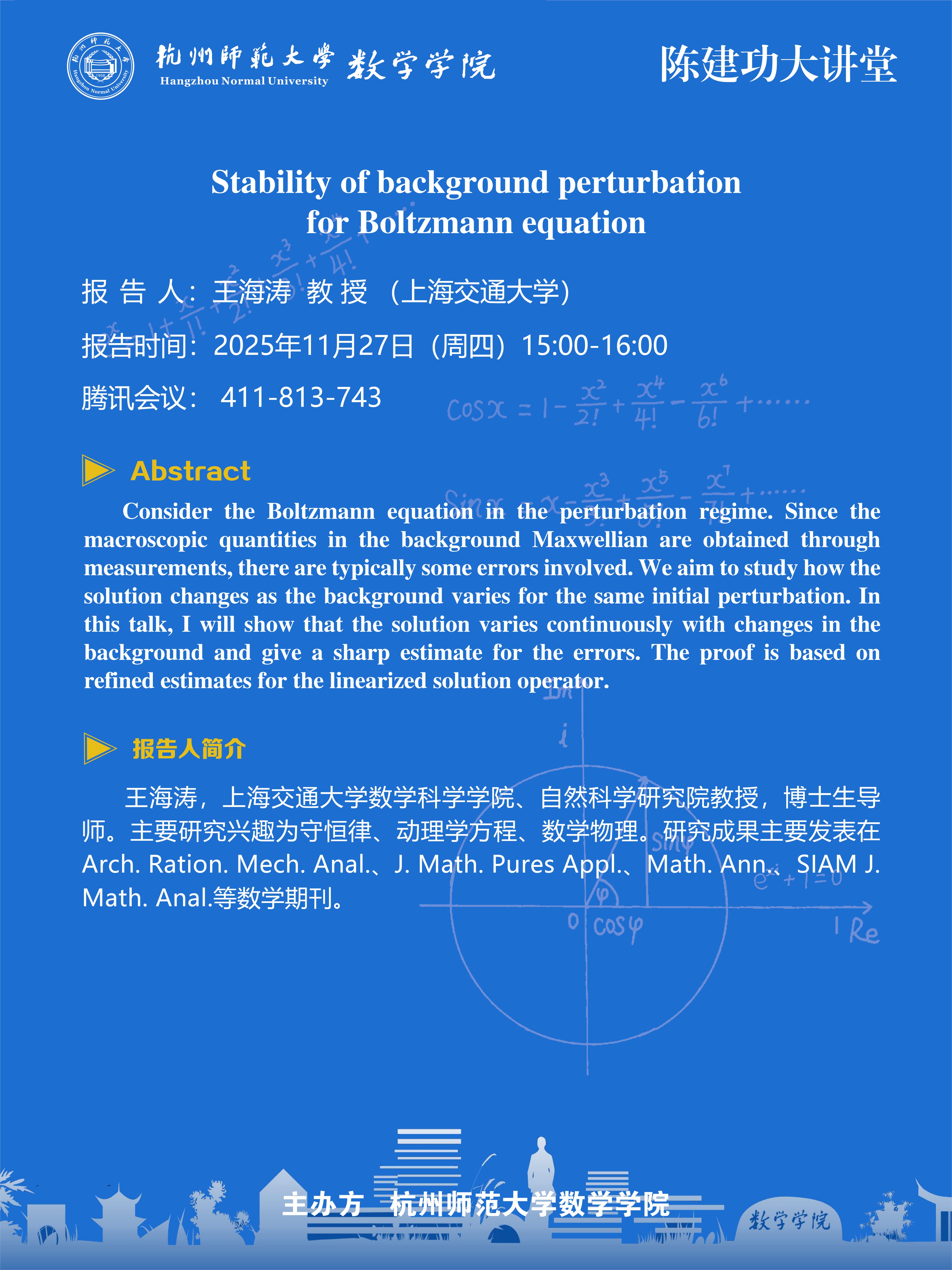 陈建功大讲堂(2025-145):Stability of background perturbation for Boltzmann equation