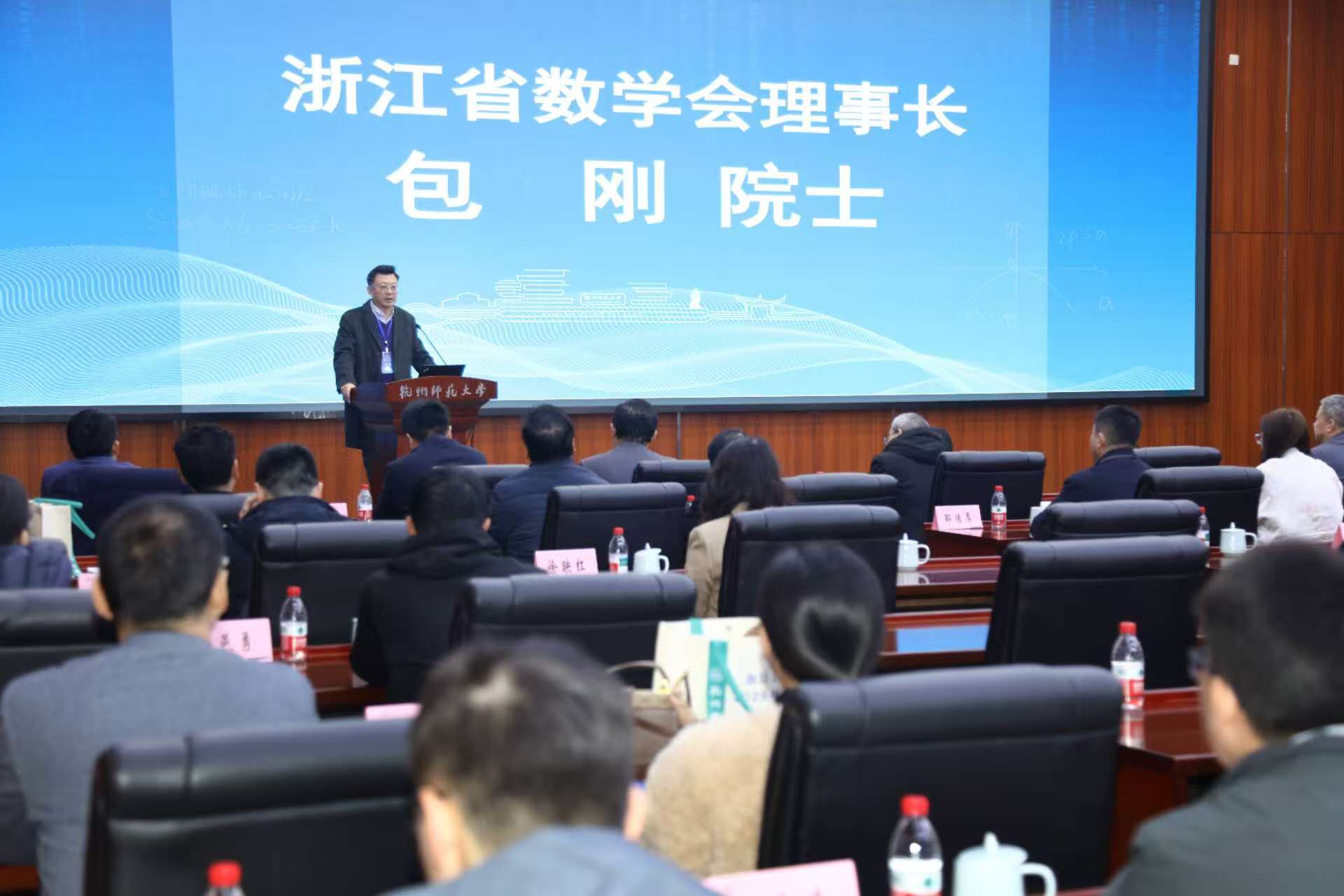 浙江省数学会理事长包刚院士代表学会致辞,他指出,浙江一直以来重视数学,出现许多浙籍数学家,近年来浙江数学更是成绩喜人,数学竞赛获得佳绩,人才引育4位在职院士,获批4个单位的博士点,一大批青年科研成果涌现,他希望浙江数学“十五五”期间更大发展。开幕式由杭师大麻豆视频 院长谢琪教授主持。