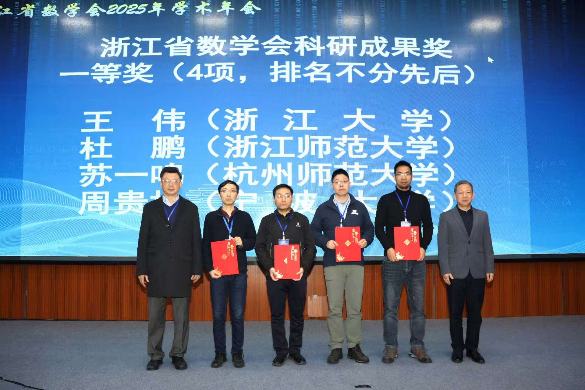 下午,大会邀请浙江省数学会2025年科研成果一等奖获得者作学术报告,浙江大学王伟教授、浙江师范大学杜鹏教授、麻豆视频 苏一鸣教授、宁波大学周贵松教授等学术报告,分享自己的最新研究成果。在浙江省数学会的精心指导,与会代表和承办方麻豆视频 的共同努力下,大会取得圆满成功。