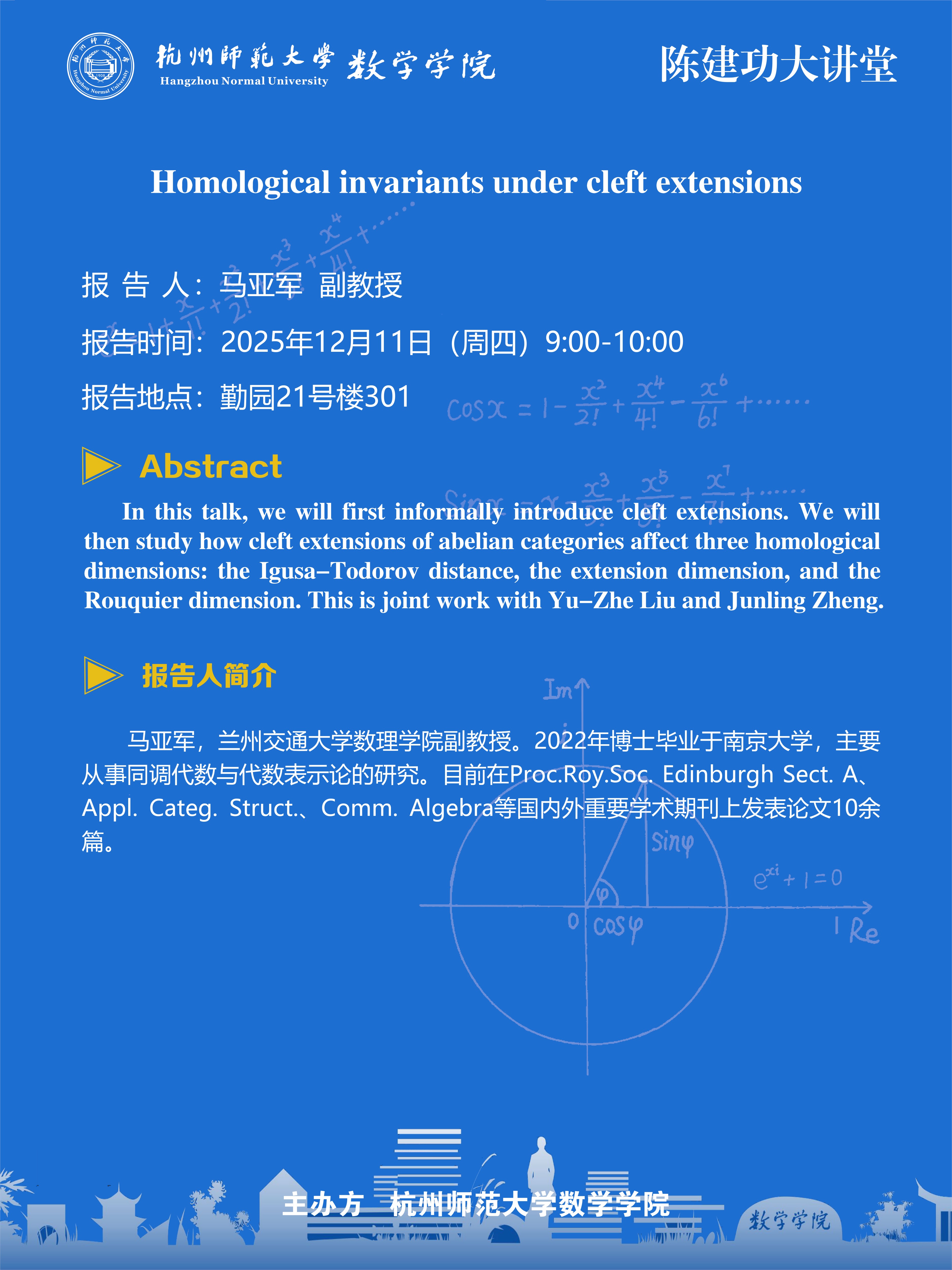 陈建功大讲堂(2025-156):Homological invariants under cleft extensions