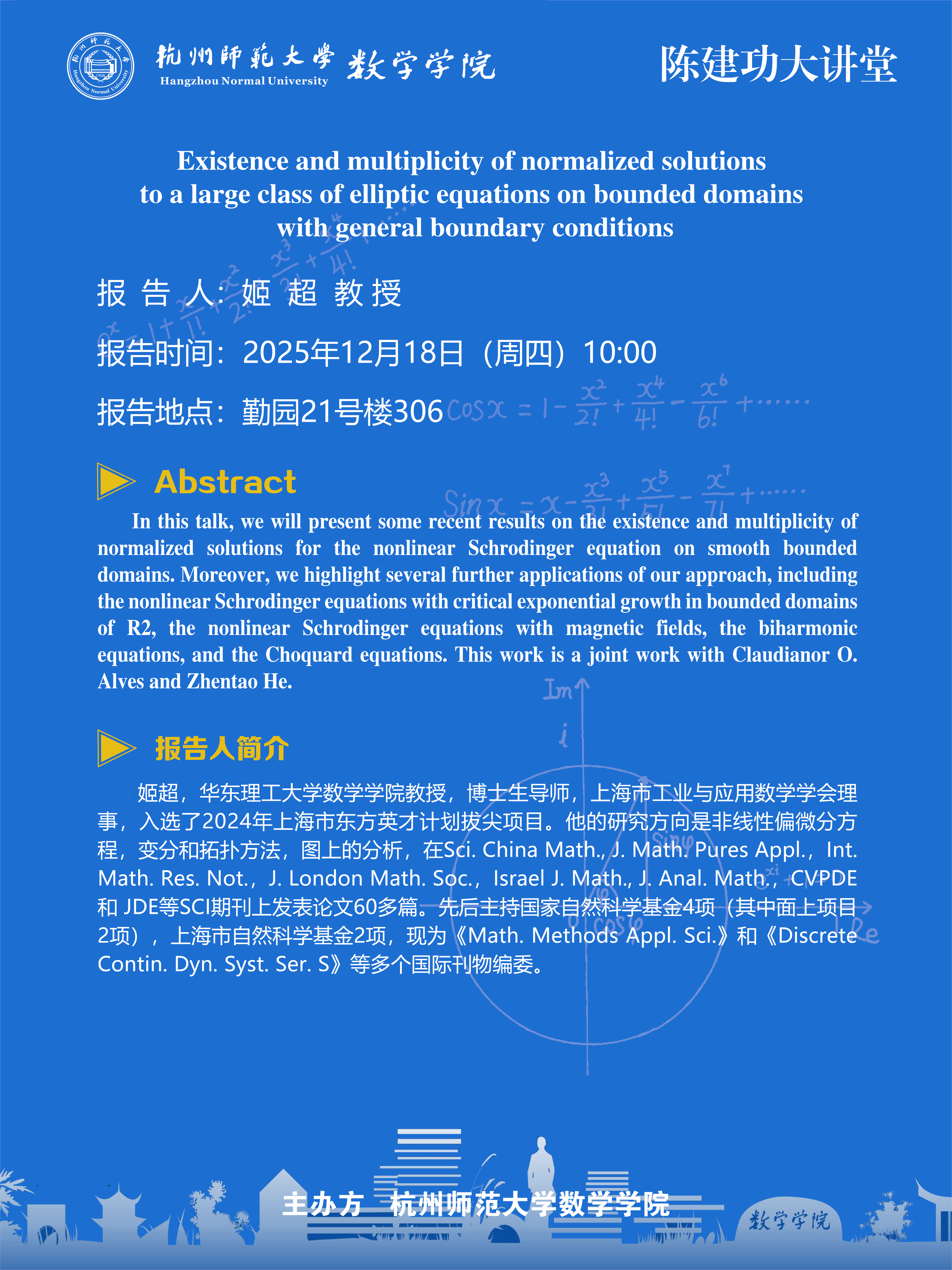 陈建功大讲堂(2025-160):Existence and multiplicity of normalized solutions to a large class of elliptic equations on bounded domains with general boundary conditions