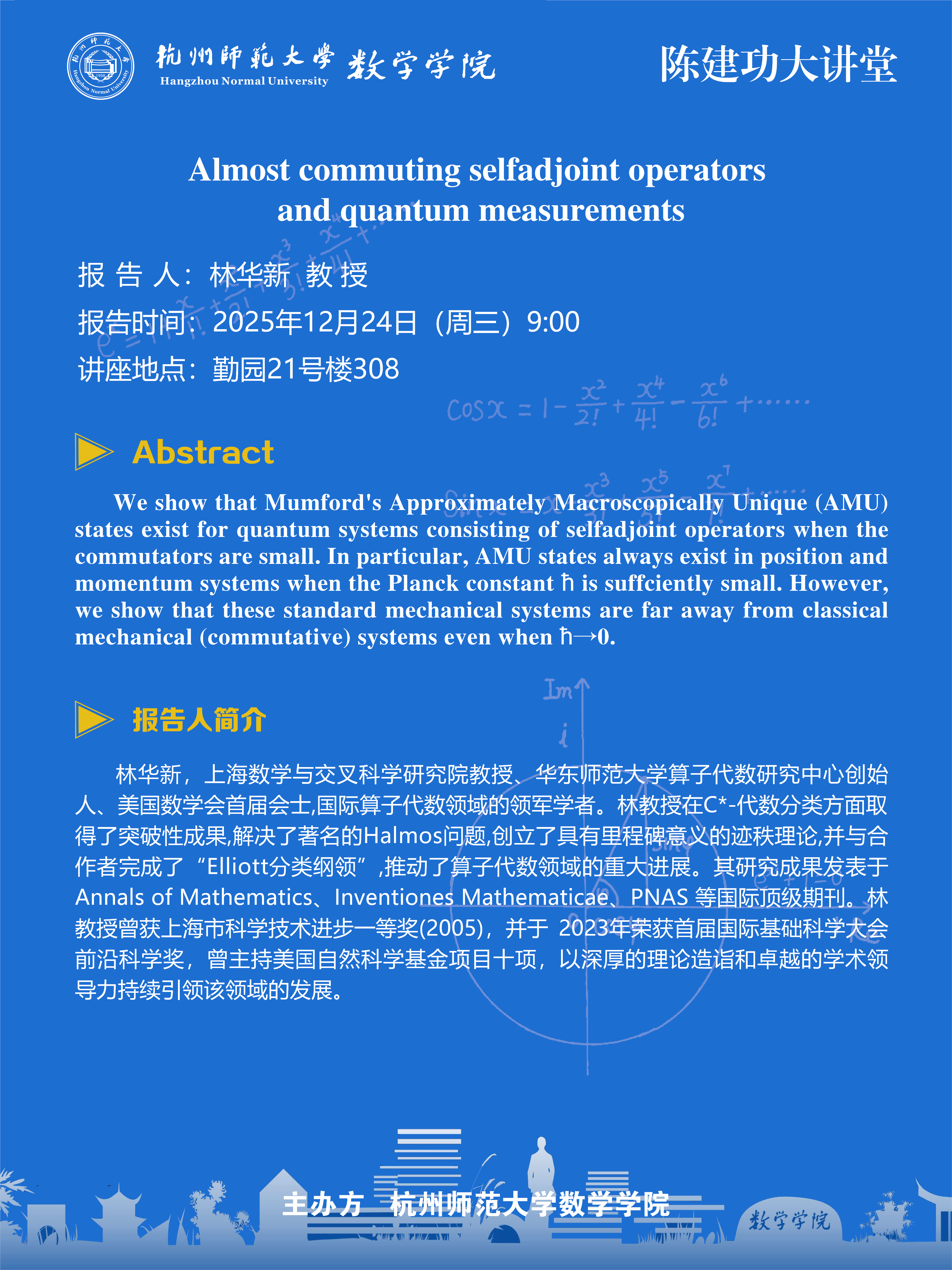 陈建功大讲堂(2025-163):Almost commuting selfadjoint operators and quantum measurements