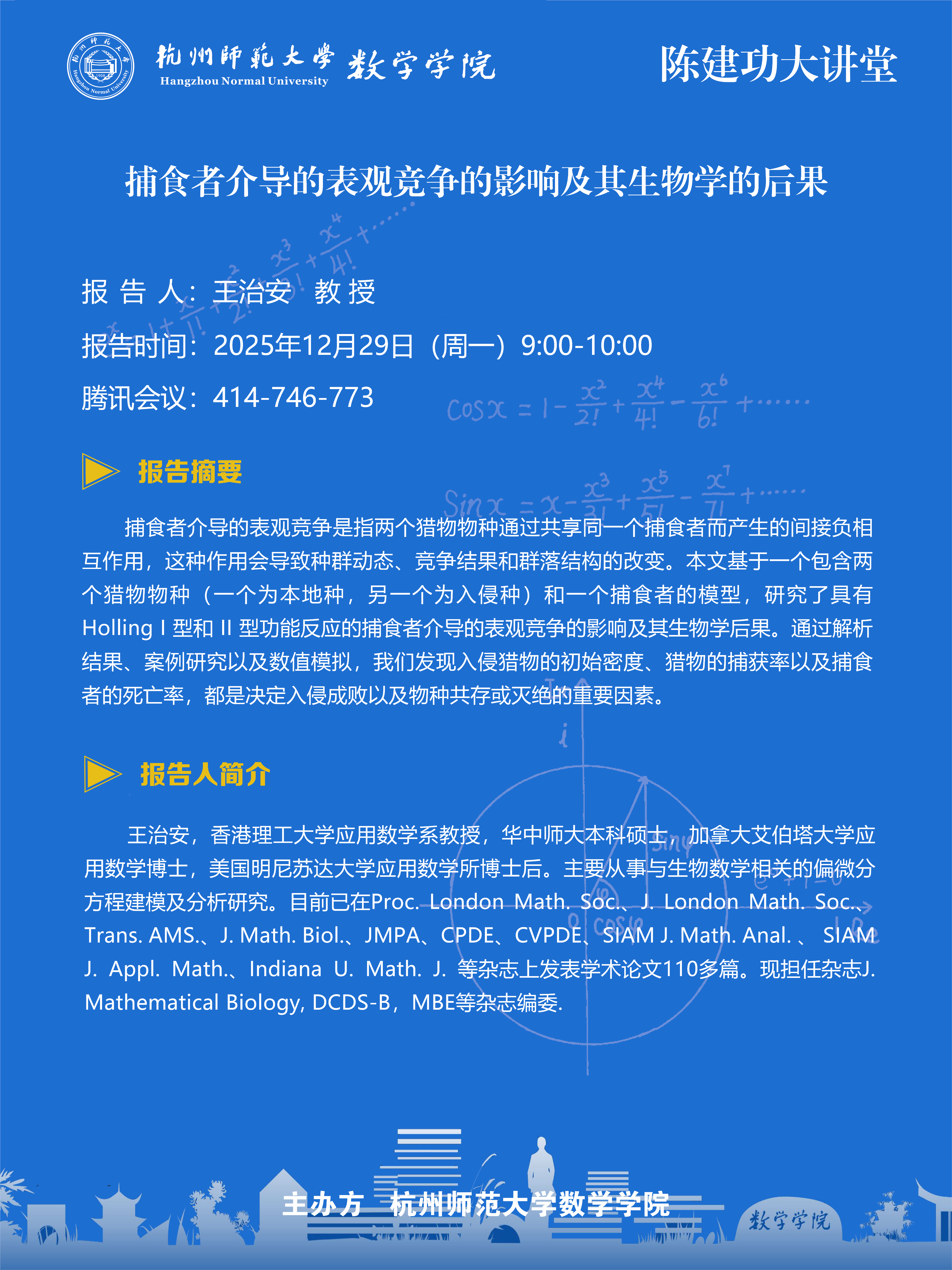 陈建功大讲堂(2025-169):捕食者介导的表观竞争的影响及其生物学的后果
