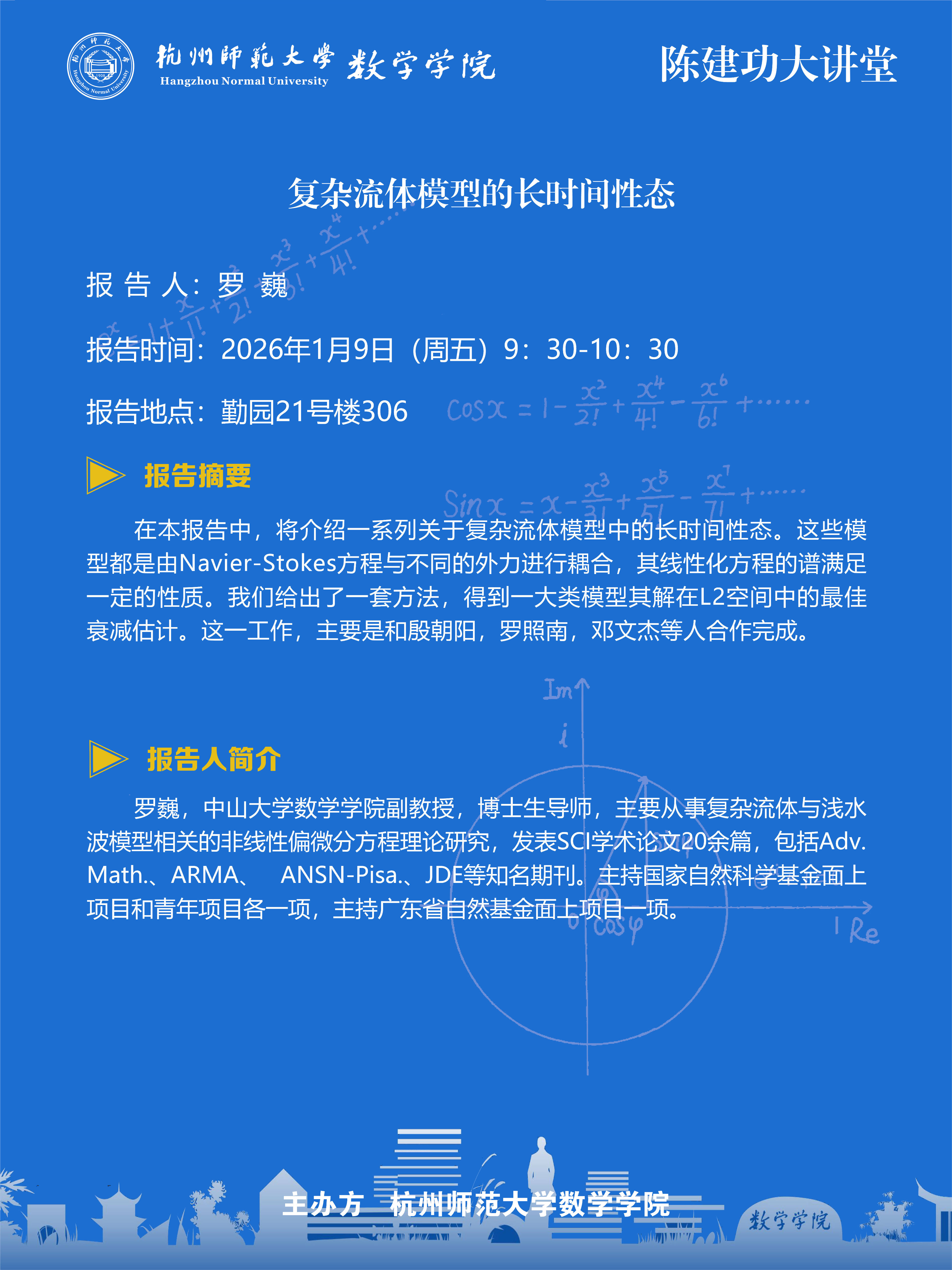 陈建功大讲堂(2026-2):复杂流体模型的长时间性态